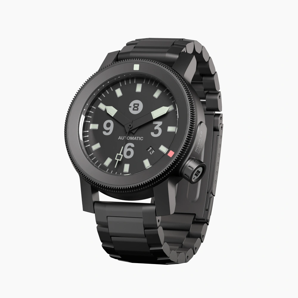 Superior scratch resistance, unmatched durability and optimal legibility. Sapphire crystal is an absolute no-brainer for these reasons. All of our timepieces also use dual-layer AR (anti-reflective) coatings on the inside of the sapphire, to ensure the time is visible in any environment. We prioritize toughness and legibility in all of our timepieces and we won’t use crystals made from any other material.