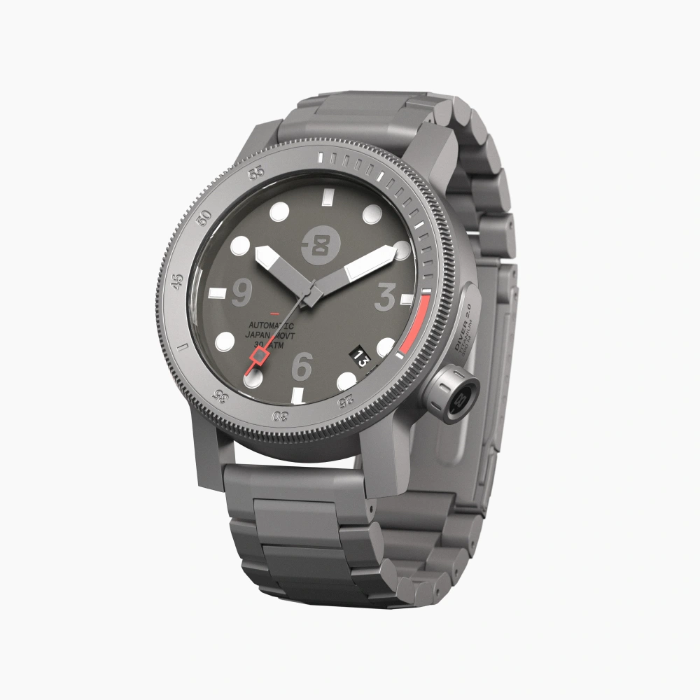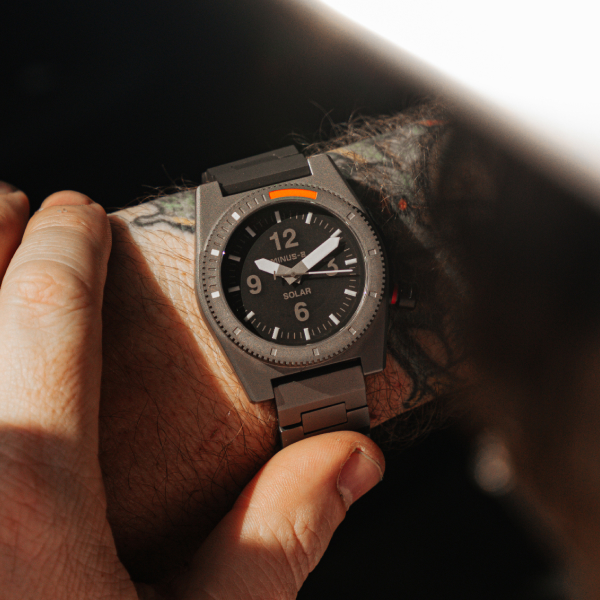 Titanium is renowned for its toughness and corrosion resistance. Not only is it an ultra-strong metal, but it is also lightweight, making it comfortable on the wrist and wearable anytime, anywhere. Since we design all of our watches to be water ready and built to last, it is our preferred material to build with.